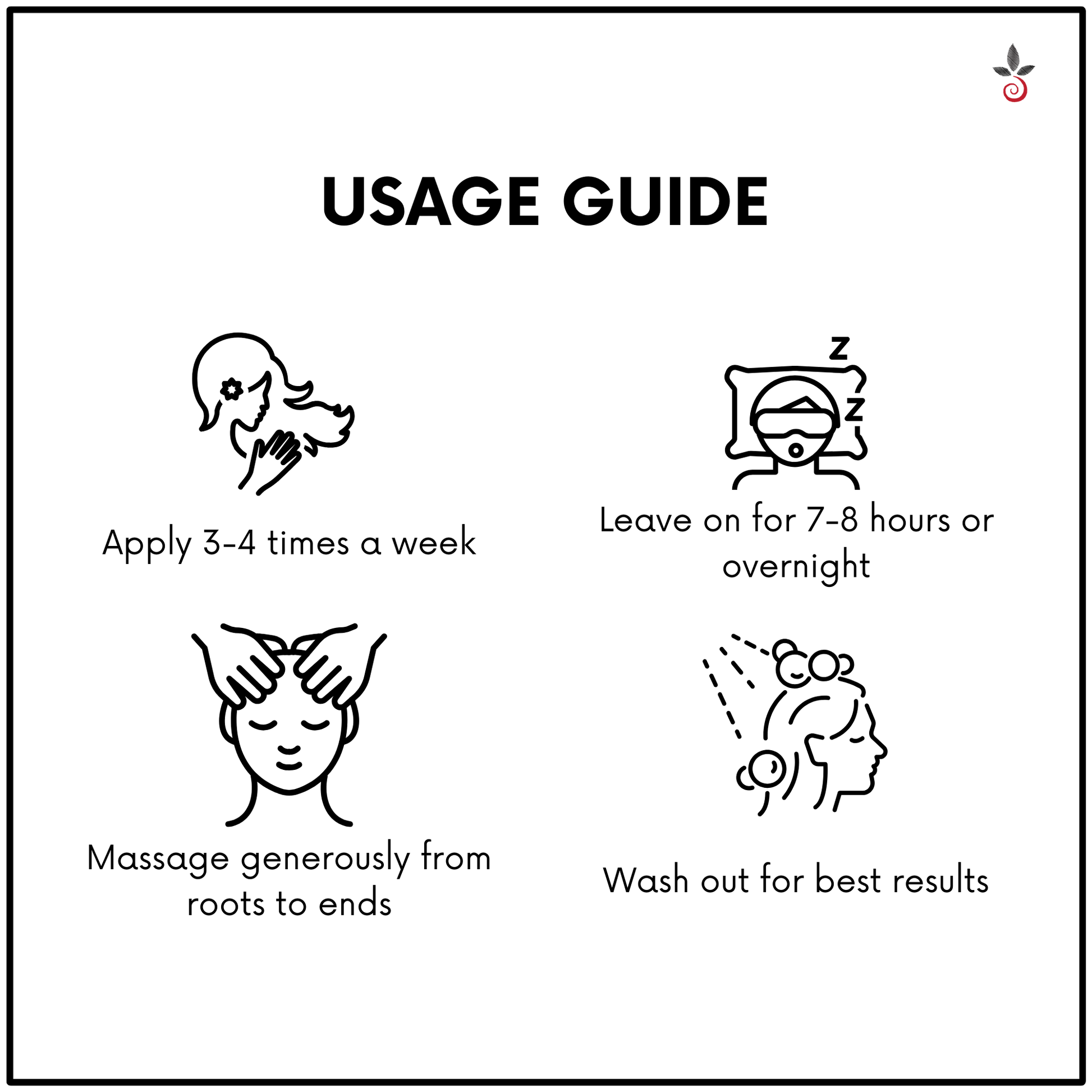 Apply generously from scalp to tips 3-4 times a week.
